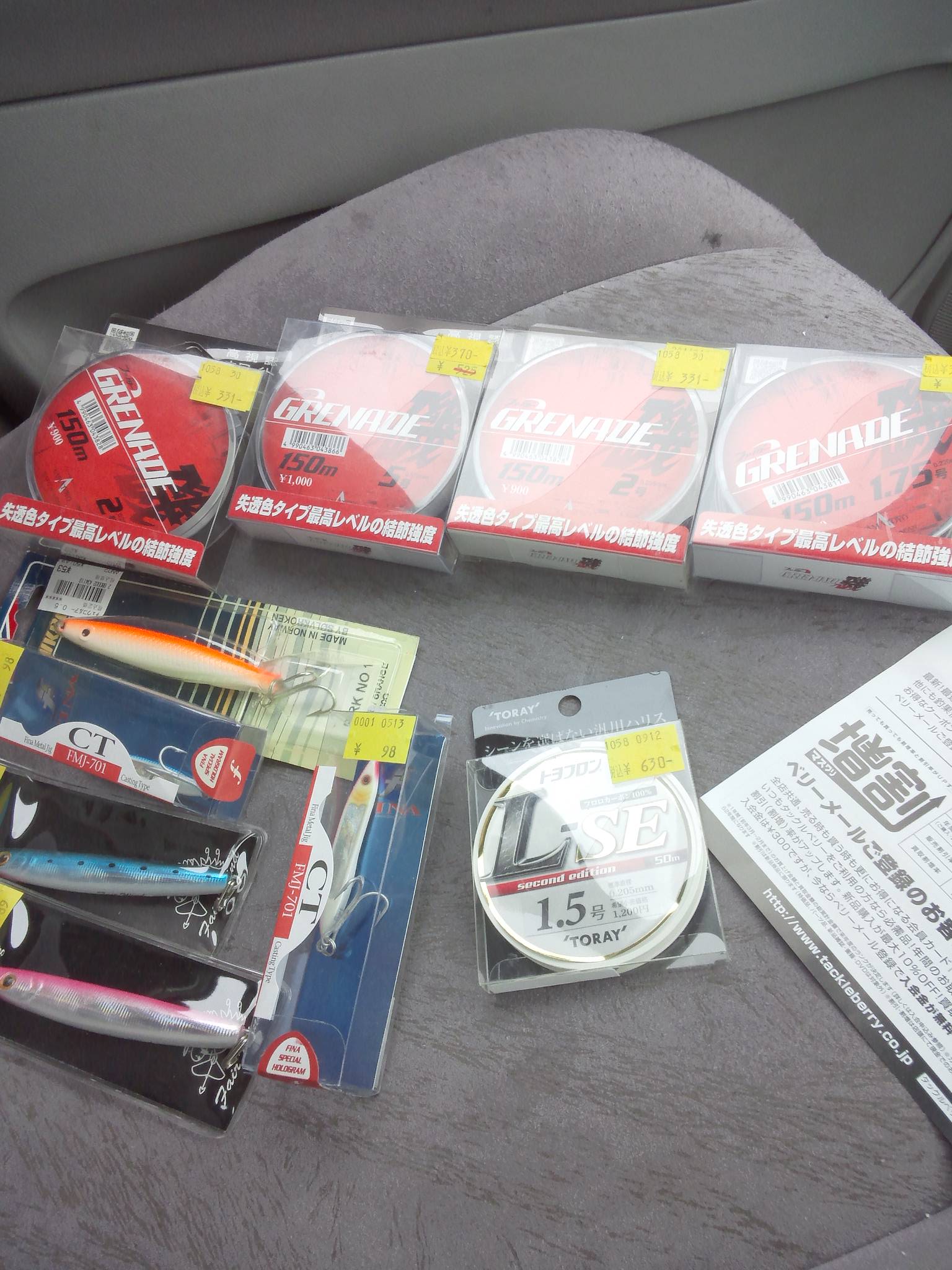 のろま台風ですっかり仕事も進まず、、、。 晴れた瞬間にやりこなせるか?俺ちゃん? 東金のタックルベリーが土曜日にオープンでちょいと行って見たらすげー人! 中古釣具は需要があるのか~? 道糸×4個 ハリス 1個 ルアー5個 全部で2000円(笑) ラッキー。 帰って リールの注油。 台風じゃ~釣りもいけねーしな~。 アリランラーメン食いて~な~ |