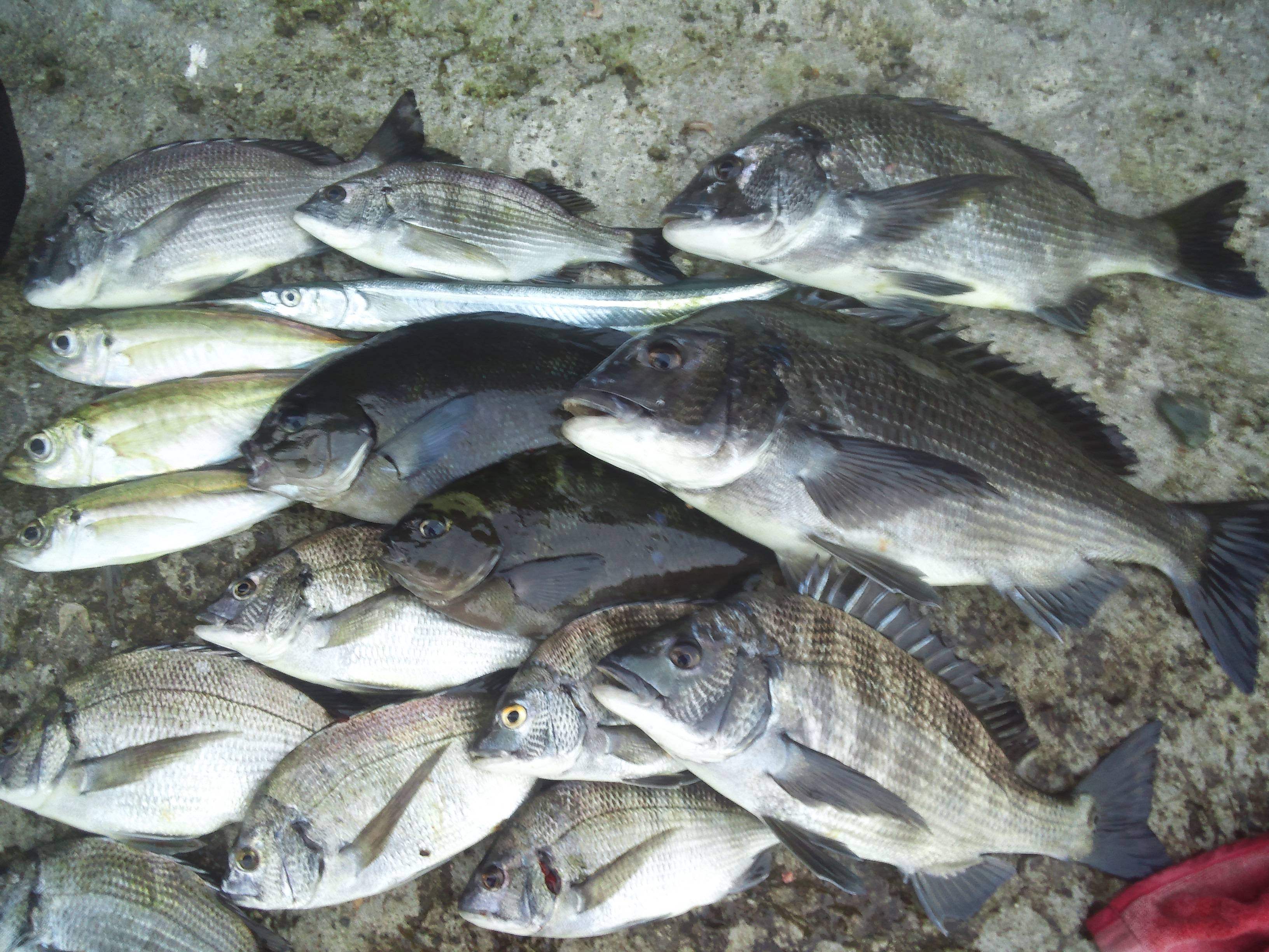 前々から予定していた御宿の平島へ。 中村ちゃん、常務、ケンチャンと4名での釣行。 平島の概要だが、 まず 上物で上がる人が居ないので近況が全くわからない。 でも過去にはメジナの50~60っていう 夢のサイズが相当数仕留められている事実がある。 情報すら出回る事が無いため 知られていない場所でもある。 水深8メートル 浅場で 4メートル。 朝から4人でがんばるが とにかくアジばっかり 他の魚が何も釣れない、、、。 でも外房は 時が必ず来る,、、であろう。 10時頃あじが少なくなりチャンスかと思うと やっとの思いで25センチのメジナが、 何故だか皆で大騒ぎ(笑) そしてケンチャンが突然42センチの黒鯛を! そしてTAMが40センチのメジナを! ここからはず~~~~っとTAMはカイズが入れ食い状態 7連チャンまでした。 その後もず~~~っとカイズが、、、。最後はバッカンに入らず全てリリース。 そして常務と中村ちゃんが同時でヒット! これまた40センチジャスト! 常務は40弱の尾長もゲットして 中村ちゃんも足裏と戯れだした。 そして黒鯛ではないようなパワーを見せてくれた47センチの黒鯛を追加して すっげー楽しかった^^! このほかにもバラシがあったり で ポテンシャルの高さに超満足^^。 とにかく楽しそうなお馬鹿さん達をごらんください。 太平洋と戯れた1日でした。 |