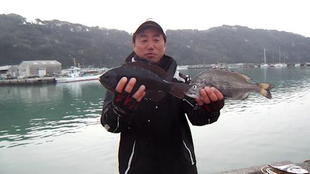 31日 例会はイマイチストレスが、、、。 翌週の 木曜日 再度富浦を舞台に。 常務 ケンチャン とモッソーへ! 夕方まで粘るも 33センチまでは食ったものの、、、 う~~~ん 何かストレスが! 地道に船付け場で粘っていたケンチャンにはドラマが! ぐい~~~~んと竿をまげてラインブレイク! あ~~終了間際のゴールデンタイムで今のラストチャンスなんでないの~? ケンチャン~! しかしケンチャンやってくれました。 たぶん同じ魚(笑) またまたぐい~~~んって曲げて何とかゲット! 40ジャストですがすっげ~まんまる。 ケンチャンそっくりな黒鯛。 良かったね~! ドラマがないとやっぱし物足りないんだろうね~。 更に勉強になった1日でした。 |