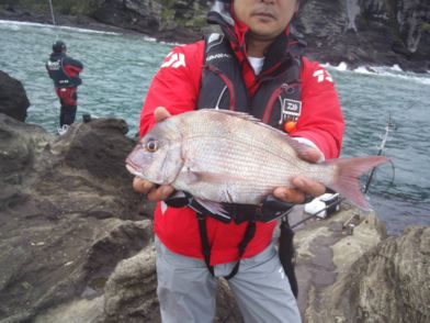 前々から予定していた御宿の平島へ。 中村ちゃん、常務、ケンチャンと4名での釣行。 平島の概要だが、 まず 上物で上がる人が居ないので近況が全くわからない。 でも過去にはメジナの50~60っていう 夢のサイズが相当数仕留められている事実がある。 情報すら出回る事が無いため 知られていない場所でもある。 水深8メートル 浅場で 4メートル。 朝から4人でがんばるが とにかくアジばっかり 他の魚が何も釣れない、、、。 でも外房は 時が必ず来る,、、であろう。 10時頃あじが少なくなりチャンスかと思うと やっとの思いで25センチのメジナが、 何故だか皆で大騒ぎ(笑) そしてケンチャンが突然42センチの黒鯛を! そしてTAMが40センチのメジナを! ここからはず~~~~っとTAMはカイズが入れ食い状態 7連チャンまでした。 その後もず~~~っとカイズが、、、。最後はバッカンに入らず全てリリース。 そして常務と中村ちゃんが同時でヒット! これまた40センチジャスト! 常務は40弱の尾長もゲットして 中村ちゃんも足裏と戯れだした。 そして黒鯛ではないようなパワーを見せてくれた47センチの黒鯛を追加して すっげー楽しかった^^! このほかにもバラシがあったり で ポテンシャルの高さに超満足^^。 とにかく楽しそうなお馬鹿さん達をごらんください。 太平洋と戯れた1日でした。 |